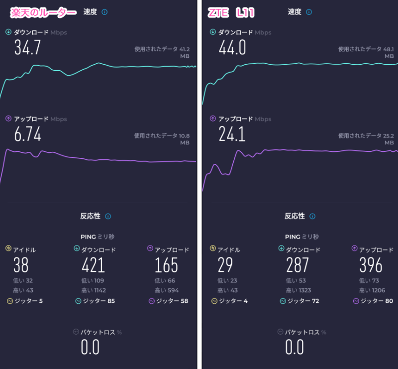 そして専用のモバイルルーターからホームルーターへ切り替えたら特に上りの速度が目立って上がった。