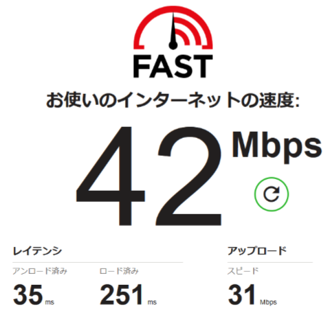 上り速度についてはADSLの頃から遅い回線ばかり使ってたから初めて見る速度だわ。