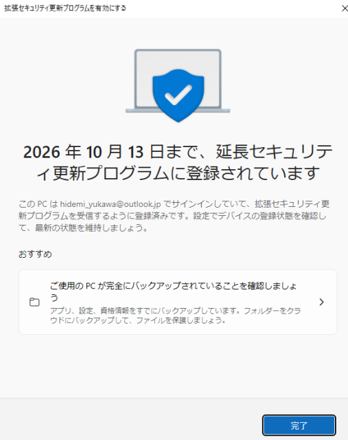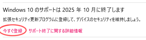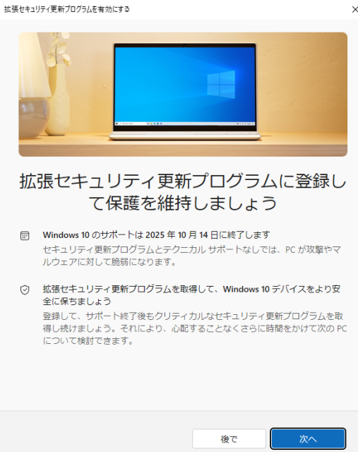 Windows10のESUについては今夏ぐらいから各家庭や職場のPCへ案内が来ており